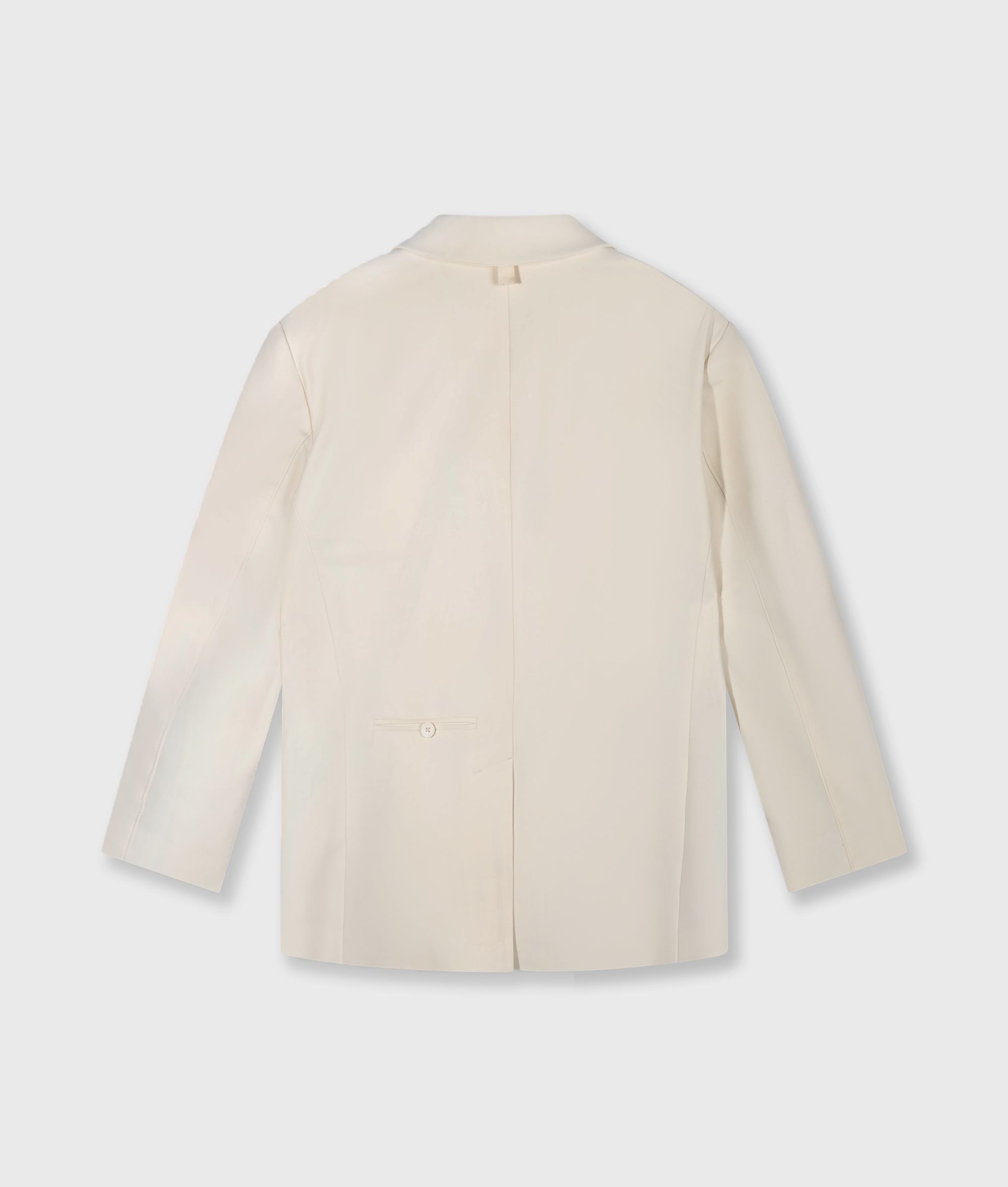 - Schnitt/Passform: Oversized Fit, bewusst weit geschnitten, Schulterpolster, Reverskragen, Knopfverschluss, zwei Pattentaschen, Brusttasche, angedeutete Paspeltasche, Rückenschlitz
