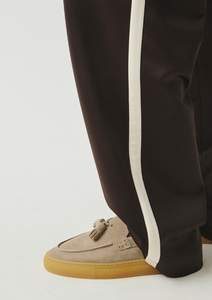 Die klassischen Tassel-Details auf dem Spann greifen ein traditionsreiches Designelement auf und interpretieren es modern und zurückhaltend. Die runde Kappe, die leicht erhöhte Form und die minimalistische Silhouette verleihen dem Loafer eine edle, entspannte Ausstrahlung. Ein dezentes Logo auf der Innensohle unterstreicht den hochwertigen Charakter des Designs.