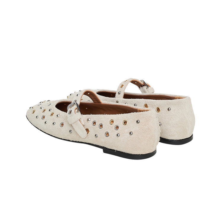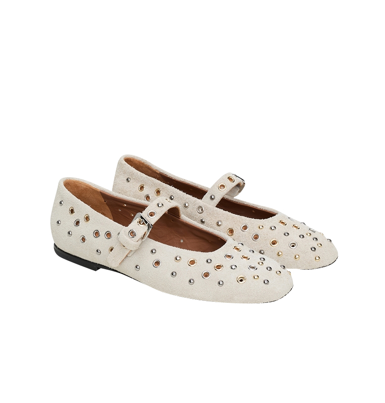 Balleraina aus weichem Kalbverlourleder von DOROTHEE SCHUMACHER mit Ösen und Nietenapplikationen.