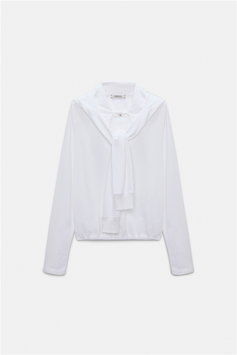 Dorothee Schumacher - Longsleeve mit Kapuze und Lagenlook pure white