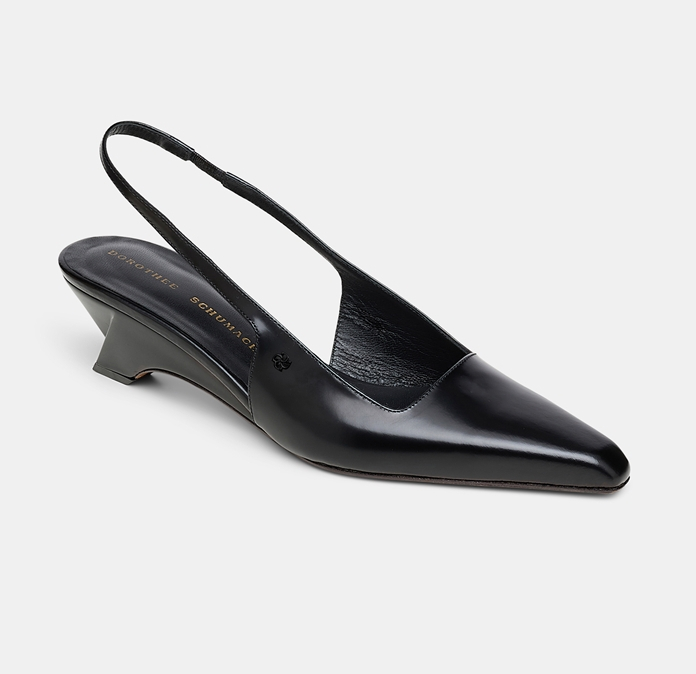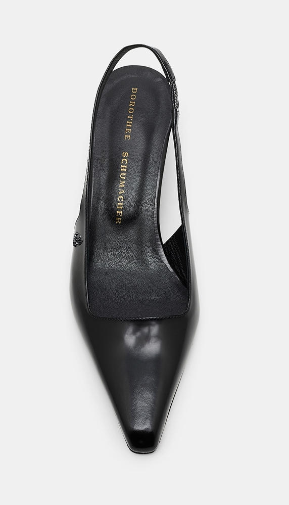 Die Slingback-Pums von DOROTHEE SCHUMACHER sind aus softem Kalbsleder gefertigt und haben ein leicht glänzendes Finish, der Absatz hat eine graphishe Silhouette.