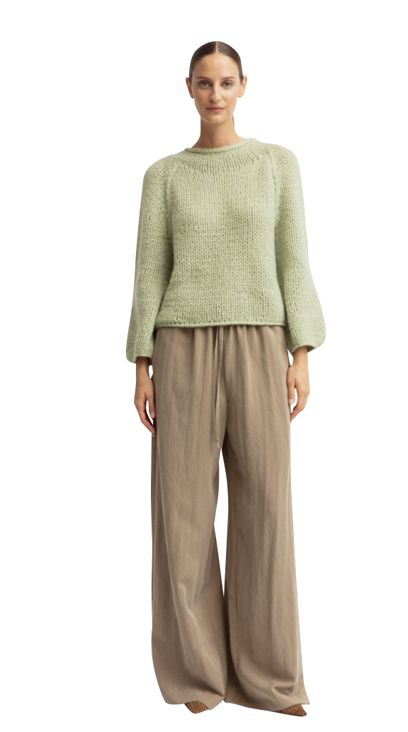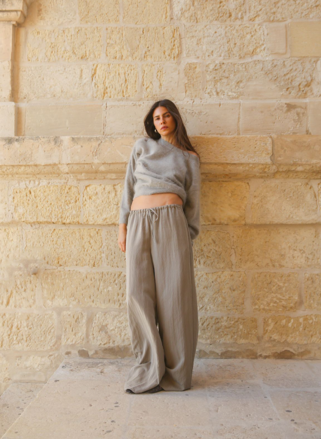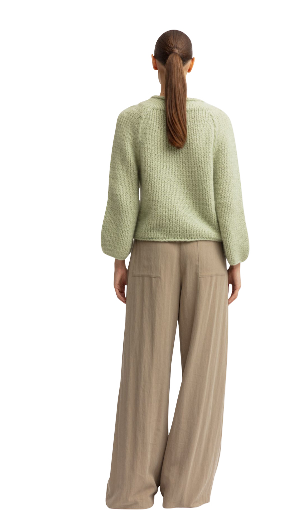 Wir kombinieren die Hose besonders gerne mit dem handgestrickten Cardigan Ivenya von Iris von Arnim, getragen über einem schlichten Top. Dazu passen Sandalen ebenso schön wie Ballerinas oder spitze Sling-Pumps – ein müheloser, eleganter Look für viele Anlässe.