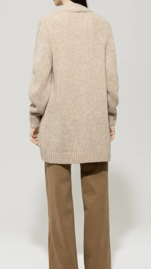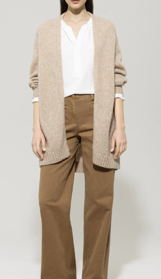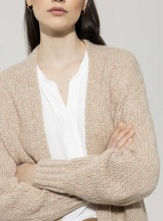 Grob gestrickte Jacke von LUISA CERANO aus leichter Alpaka-Woll-Michung mit Boule-Ärmeln.