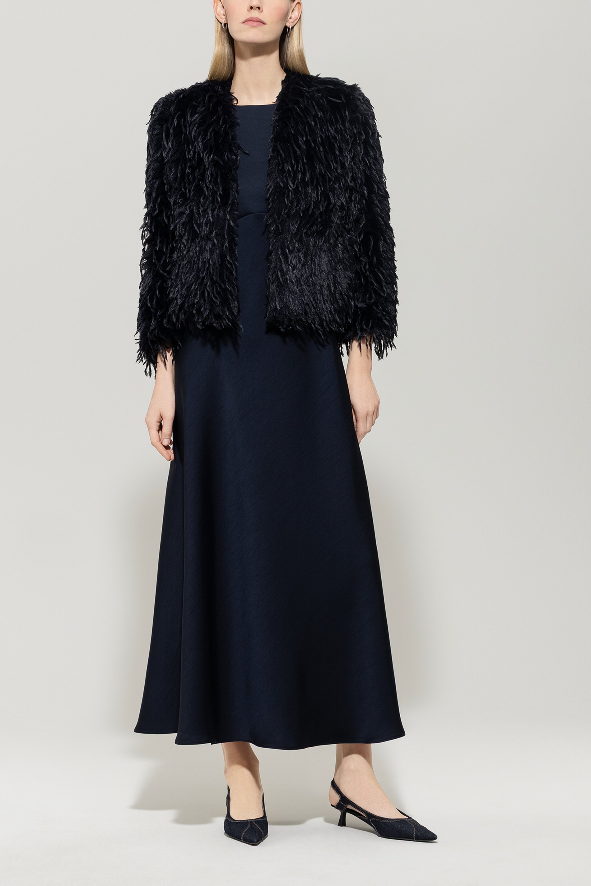 Kurze, gefütterte Jacke aus Webpelz in extravaganter Feder-Optik von LUISA CERANO.