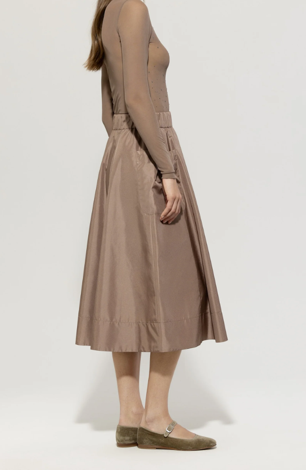 Rock von LUISA CERANO aus einem glänzendem Outdoor-Changeant-Taft in weit, ausgestellter Form mit aufgesetzten Taschen.