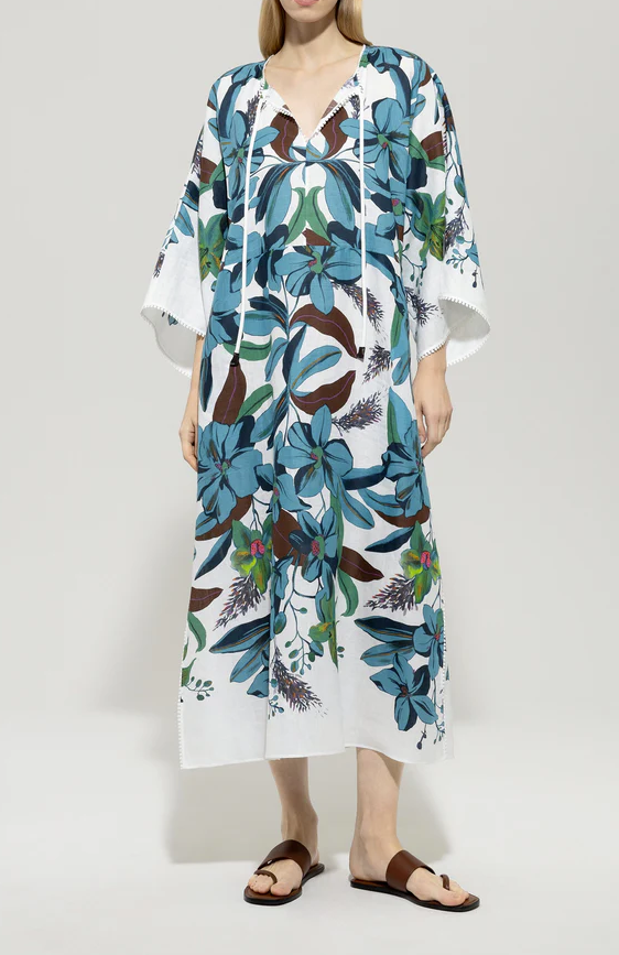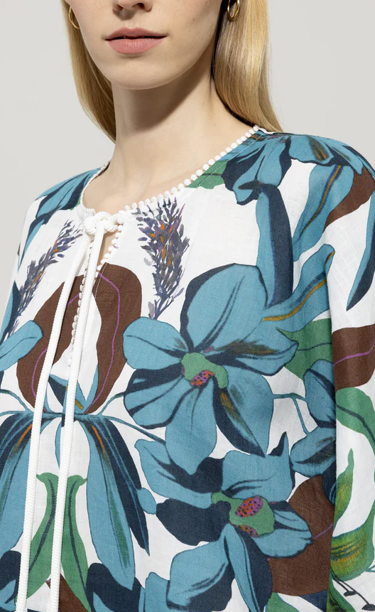 Langes Tunikakleid von LUISA CERANO aus feinem sommerlichchem Ramie Stoff mit exklusivem Hawai-Print.