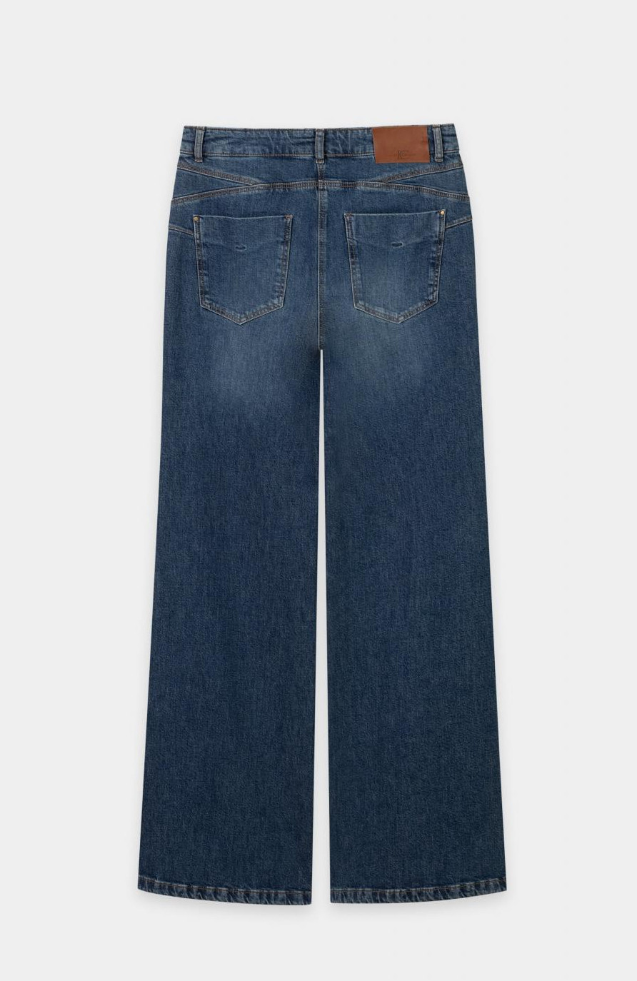 Dekorative Pattentaschen unter dem Bund, verziert mit goldfarbenen Schmuckknöpfen, setzen ein stilvolles Highlight. Klassische Details wie Gürtelschlaufen, ein Labelpatch am Bund, seitliche Eingrifftaschen sowie zwei Gesäßtaschen runden das Design ab. Die helle Denim-Waschung „Casual Blue“ verleiht der Hose eine frische, moderne Ausstrahlung – perfekt für vielseitige Looks von casual bis chic.