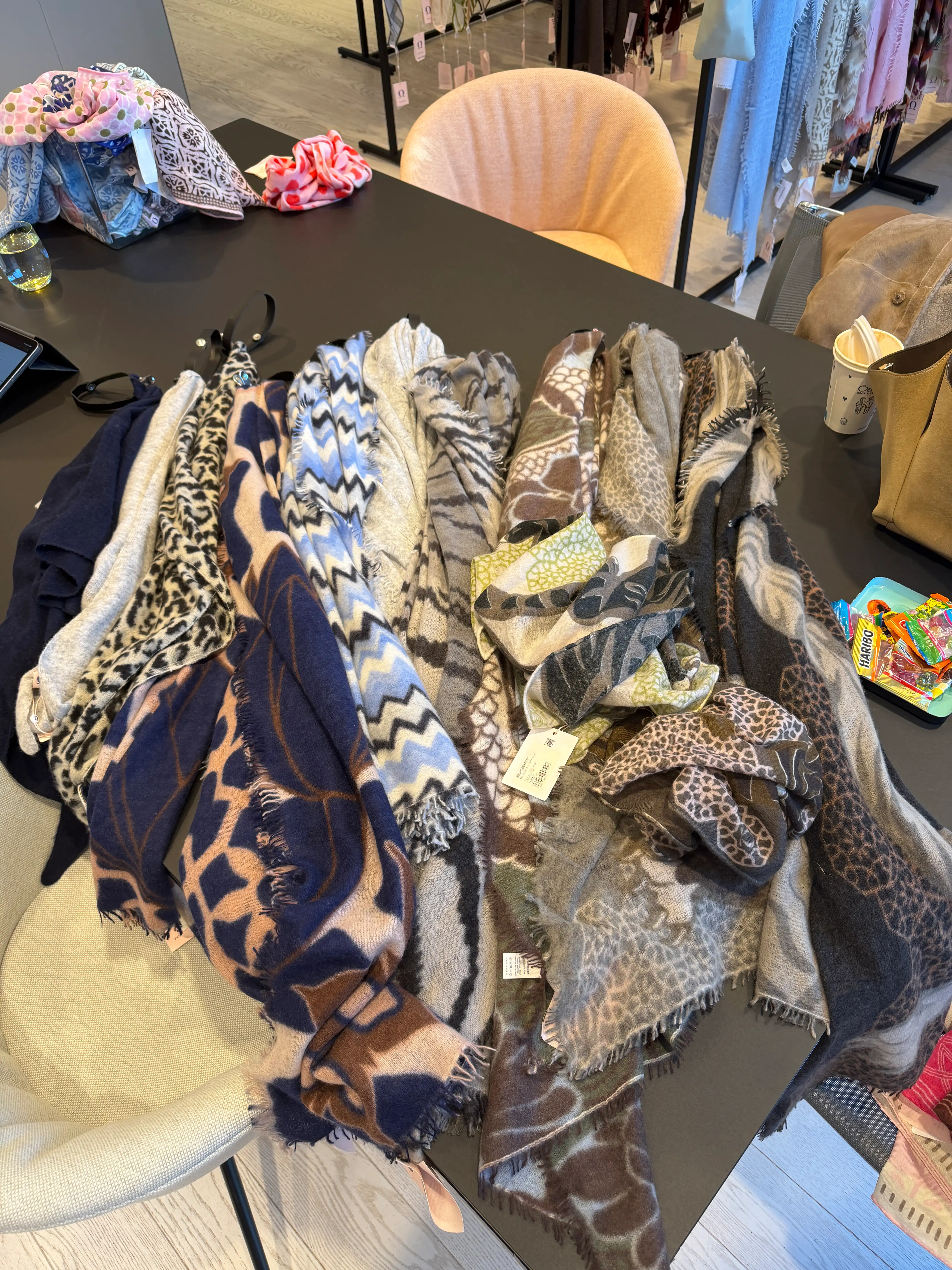 Das dritte Bild zeigt die Schals und Tücher, die im nächsten Jahr von Pur Schoen kommen werden. Sie ergänzen unsere Looks auf eine sehr selbstverständliche Art. Freut euch schon jetzt auf kuschelige Zeiten.