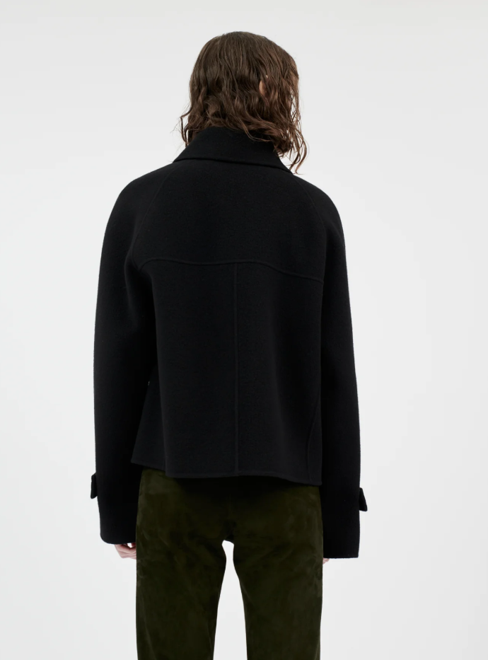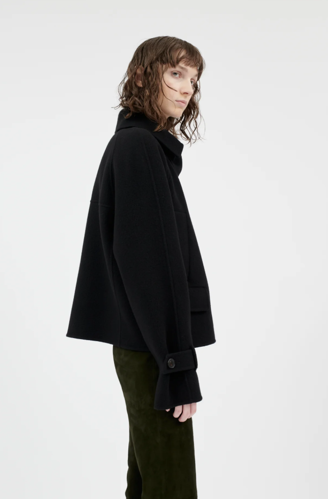 Diese Jacke von ODEEH verbindet maskuline Strenge mit luxuriöser Eleganz. Der lässige Oversize-Schnitt im Pilotenstil, kombiniert mit Raglanärmeln und markanten Details wie Armriegeln und einem abnehmbaren Kragenriegel, verleiht ihr eine moderne und zugleich klassische Ausstrahlung. Gefertigt aus einer edlen Woll-Kaschmir-Mischung bietet sie hohen Tragekomfort und ein wertiges Finish.