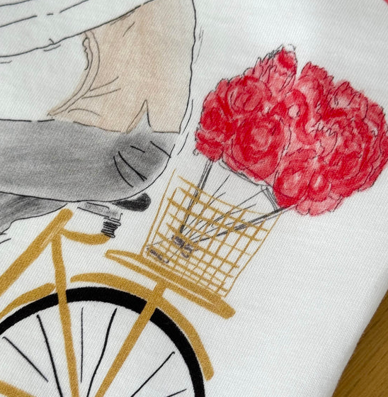 Ein klares Weiß trifft auf eine feine Illustration in Rot: Das T-Shirt „Bike Red“ von Sustyle erzählt von Leichtigkeit, Bewegung und einem Hauch Nostalgie. Die Frau auf dem Fahrrad, umgeben von roten Blumen, wirkt ruhig und zugleich lebendig – wie ein stiller Sommertag in der Stadt. Der lockere Schnitt mit kleinem, aufgekrempeltem Armsaum verleiht dem Shirt eine entspannte Silhouette. Die weiche Baumwolle sorgt für ein angenehmes Tragegefühl und macht es zu einem unkomplizierten Begleiter im Alltag. Ein limitiertes Design mit sanfter Ausdruckskraft.