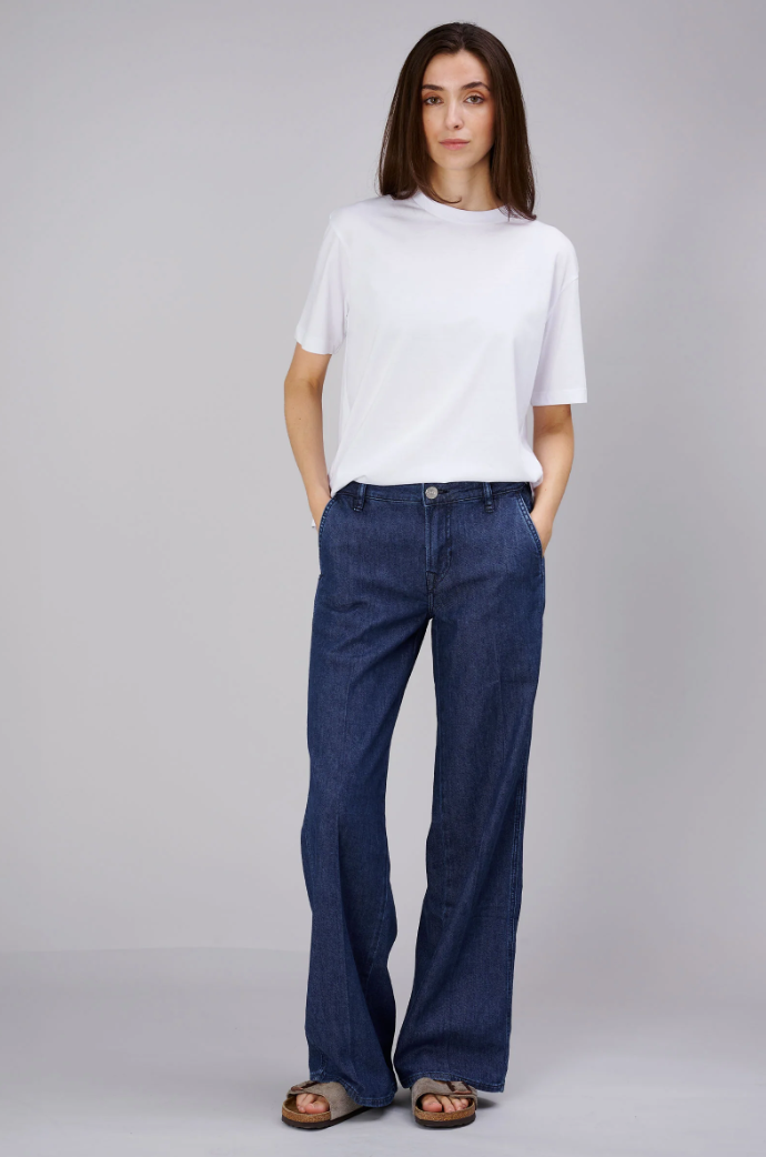 Eine modern interpretierte Denim mit klarer Silhouette und entspannter Weite. Das Modell „Lauren“ von True Religion zeigt sich im authentischen Washed-Out-Look in mittlerem Blau und verbindet lässige Eleganz mit hohem Tragekomfort. Die fließende Materialmischung sorgt für eine weiche Haptik und eine natürliche Bewegung, während die mittlere Bundhöhe und der weite Schnitt eine zeitgemäße, unaufgeregte Linie schaffen.