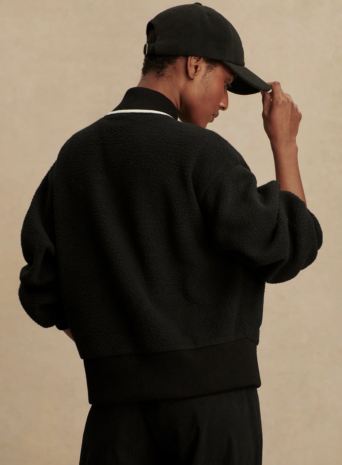 Hansley Fleecejacke von VARLEY in klassische, lässige Bomberjacke ist ein stillvolles und vielsesitiges Basic für den Lagenlook. Elegante Kontraststreifen am Kragen und an der Vorderseite verleihen dem Design Struktur.