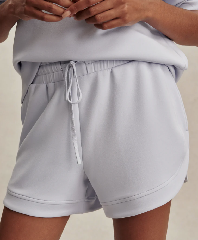 Eine moderne Shorts mit klarer Silhouette und softem Tragegefühl: Das Modell „Ollie“ von Varley verbindet entspannten Komfort mit einer reduzierten, zeitgemäßen Optik. Der elastische High-Rise-Bund sorgt für eine angenehme Passform, während der leicht geschwungene Saum die Form subtil auflockert. In „Xenon Blue“ wirkt das Design ruhig und frisch zugleich – ideal für warme Tage mit stilvollem Anspruch.