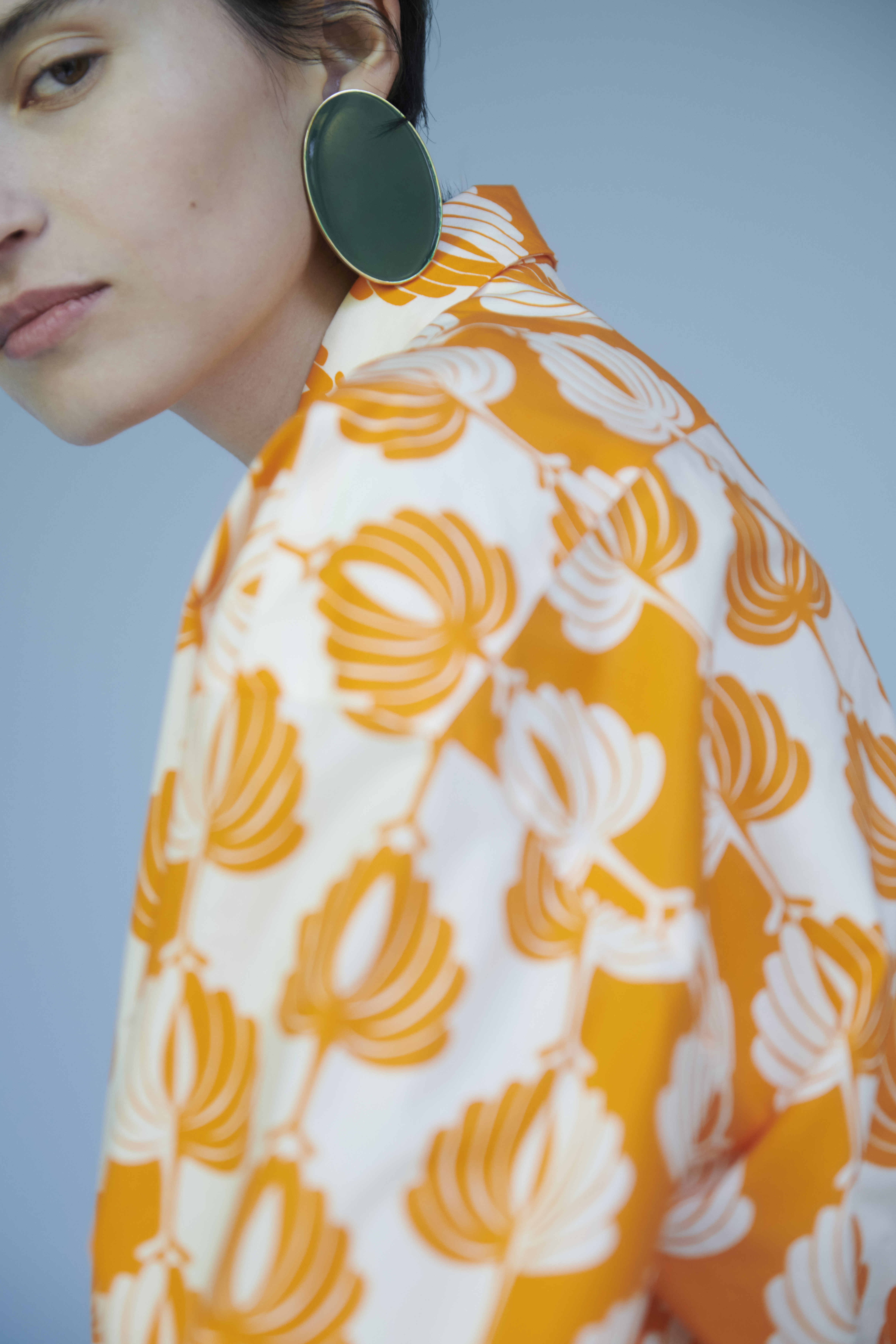 Diese semitransparente Bluse aus einer feinen Lyocell-Ramie-Mischung besticht durch ihr exklusives, ornamentales Blumendessin und eine fließende, luftige Silhouette. Die Cape-Form verleiht dem Design eine besondere Leichtigkeit und Bewegung, während der offene Ausschnitt mit Schluppe und die gesmokten Ärmelabschlüsse elegante Akzente setzen. Die Kombination aus Transparenz und Struktur unterstreicht die moderne, ausdrucksstarke Handschrift von Luisa Cerano. So kombinieren wir den Look Die Bluse entfaltet ihre Wirkung besonders in Kombination mit schlichten Hosen oder Shorts, die dem ausdrucksstarken Print Raum geben. Dunkle Töne greifen die Nuancen des Dessins auf, während helle Naturfarben für einen spannenden Kontrast sorgen. Flache Sandalen oder reduzierte Schuhe runden den Look ruhig und stimmig ab. Schnitt/Passform: Locker fallende Bluse in Cape-Silhouette mit überschnittenen Schultern, offenem Ausschnitt mit Schluppe, gesmokten Ärmelabschlüssen und abgerundetem Saum Modelname: Bluse mit Flower Print Farbe: Tinted Blue/Multi Material: 52% Lyocell (Tencel™), 48% Ramie Pflegehinweis: Maschinenwäsche bei 30° Hinweis: Leichte Farbabweichungen können aufgrund der Ausleuchtung des Bildes entstehen.