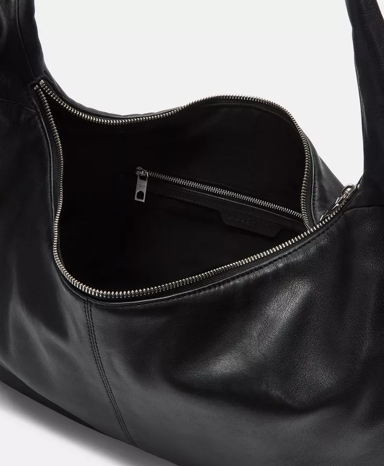 Diese edle Hobo Bag von LIEBESKIND BERLIN ist ein stilvoller Begleiter für jeden Tag. Aus weichem, geschmeidigem Lammleder gefertigt, überzeugt sie mit einer modernen Bananenform und einem durchgängigen Lederriemen, der sowohl klassisch am Arm als auch bequem Crossover getragen werden kann. Das hochwertige Leder in Dunkelbraun oder Schwarz verleiht der Tasche einen zeitlosen Look, der zu jedem Outfit passt. Der verstärkte Boden sorgt für Stabilität, während der Reißverschluss einen sicheren Verschluss garantiert.