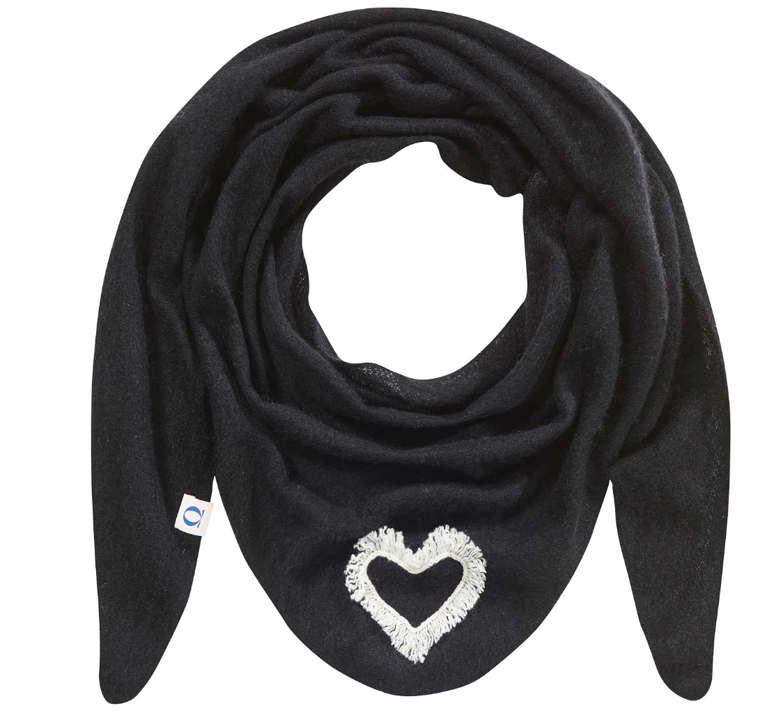 Ein luxuriöses Dreieckstuch aus 100% Kaschmir – leicht gefilzt, wunderbar weich und angenehm auf der Haut. Das edle Accessoire von Pur Schoen überzeugt durch seine klare, schlichte Form und ein liebevolles Detail: Auf der Vorderseite ist im Dreieck ein weißes Herz mit feinen Fransen aufgestickt – ein besonderer Eyecatcher, der dem Look eine charmante Note verleiht.