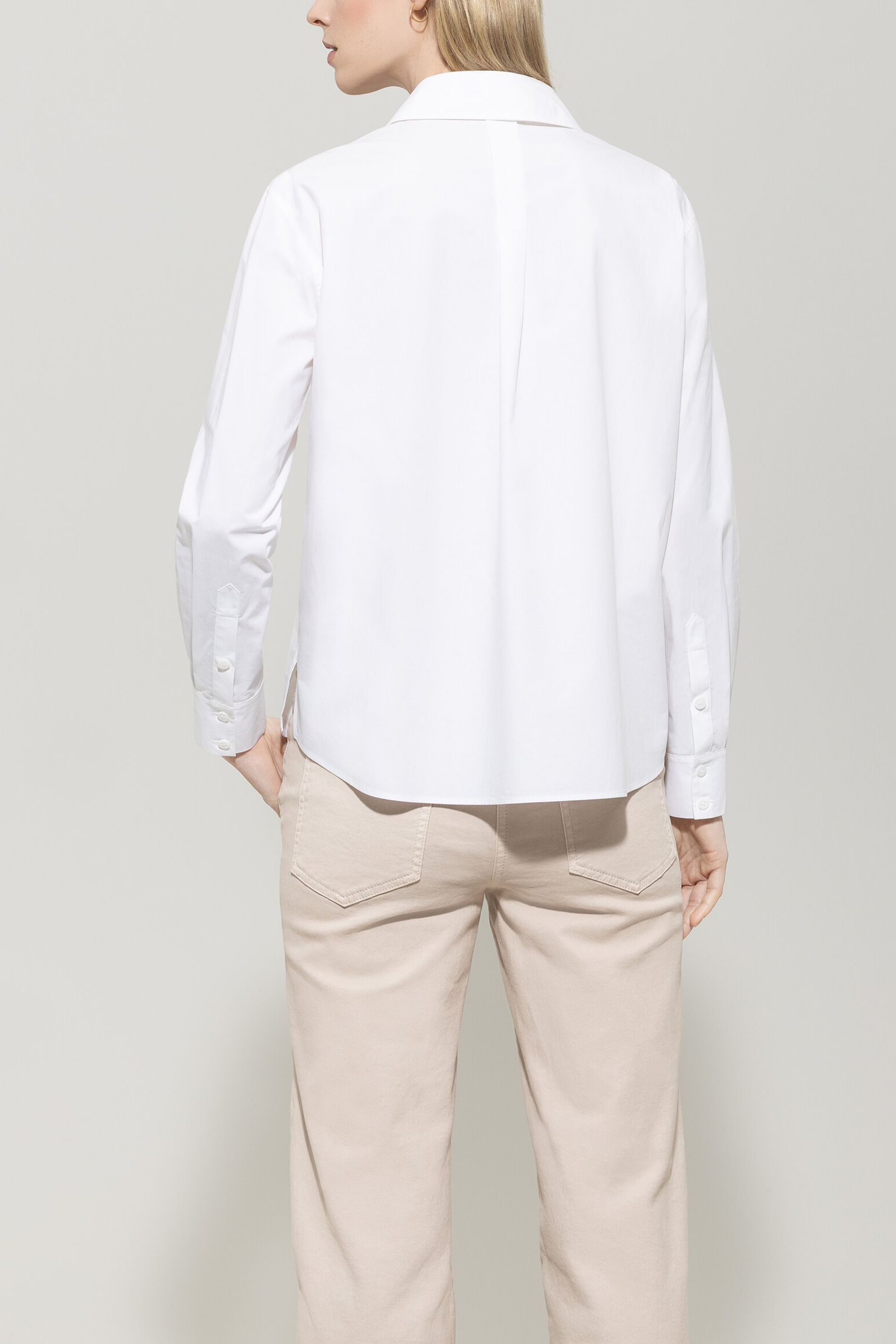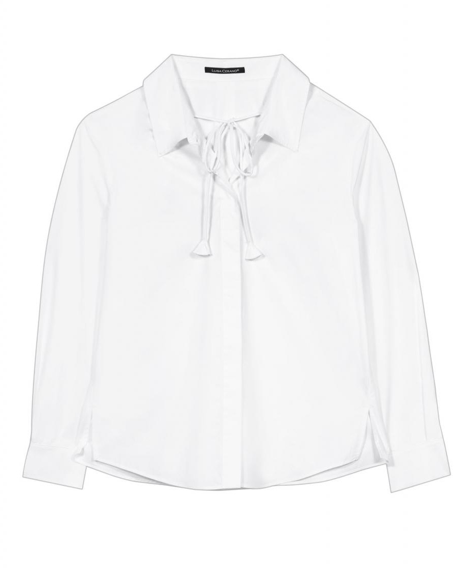 Baumwoll-Hemdbluse von LUISA CERANO in modernem Design mit Hemdkragen, verdeckter Knopfleiste und Manschetten. Bindebänder mit Quasten betoten den lässigen Stil.