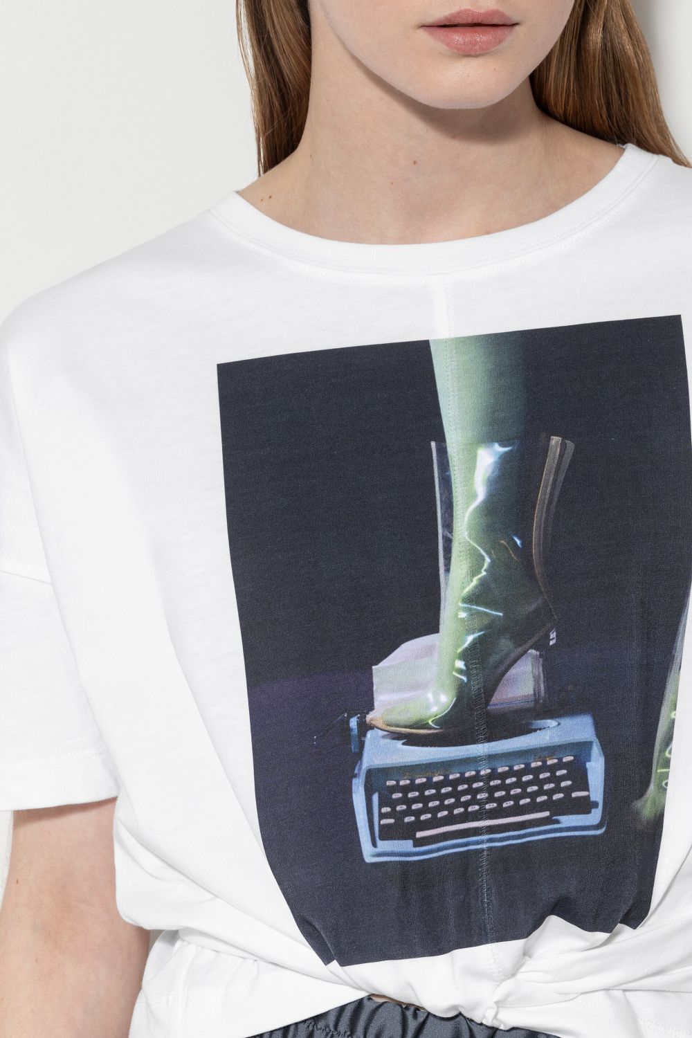 T-Shirt von LUISA CERANO aus glatter Bio-Baumwolle mit großem Ink-Jet-Print auf der Vorderseite.
