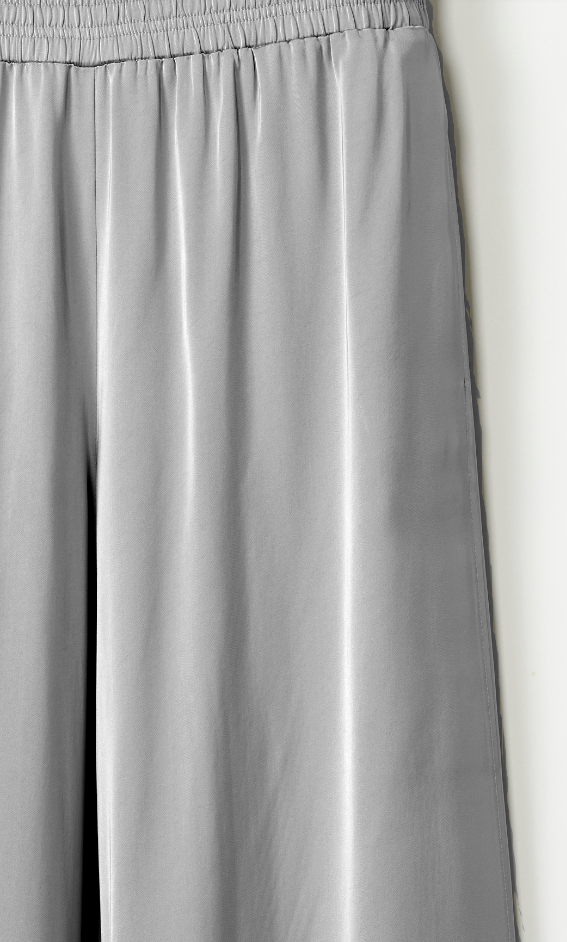 Fließend, fallende Satinhose von FABIANA FILIPPI in einem edlen grau mit elastischem Taillenbund.