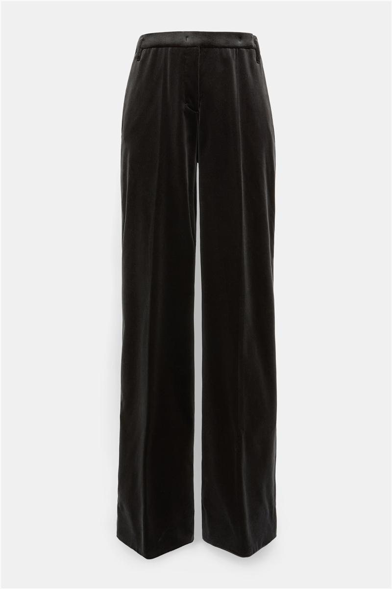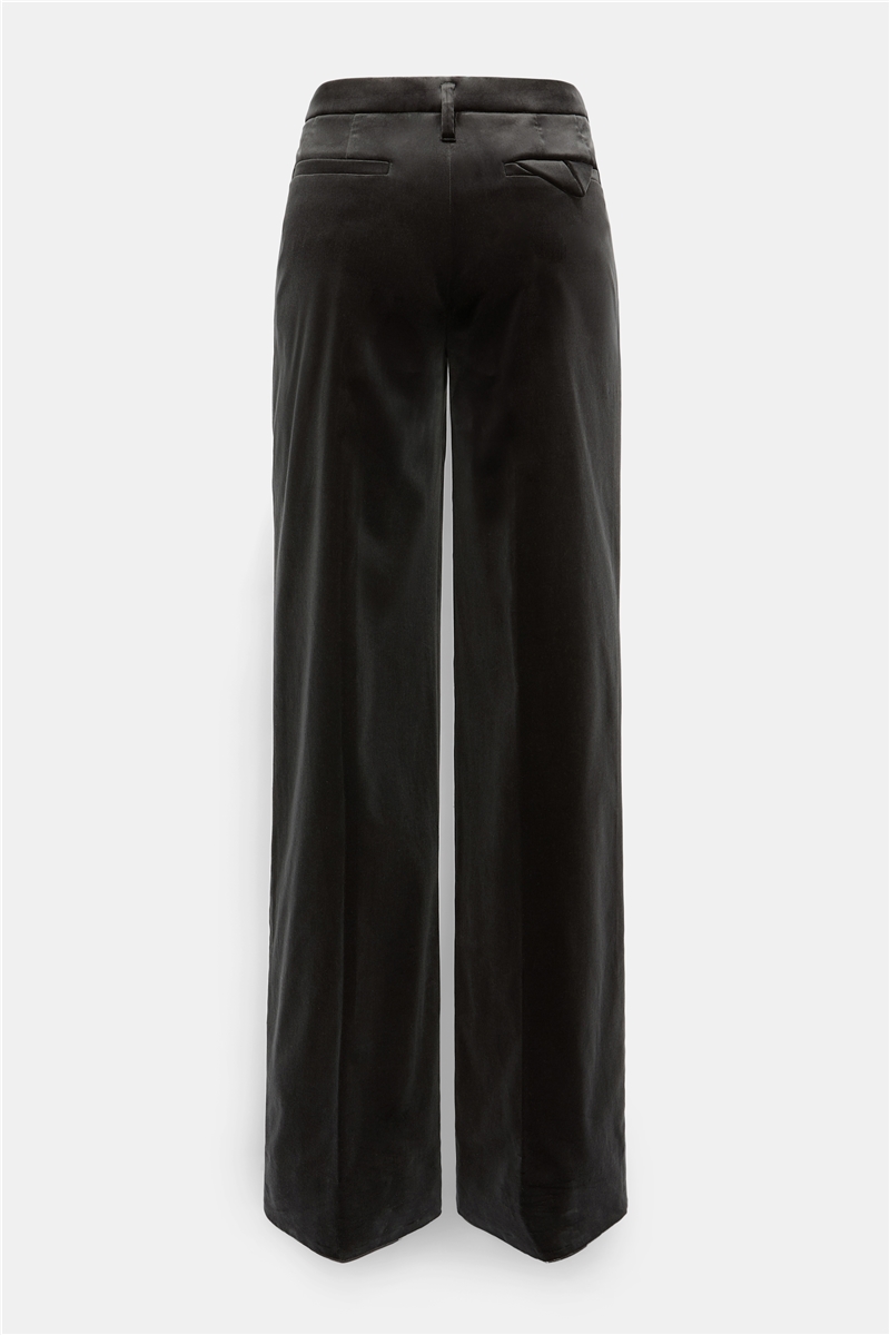 Eine edle Samthose Elegant Softness Pants von Dorothee Schumacher aus einer soften Stretch-Baumwollmischung, die durch ihr fließendes, weites Bein eine elegante Silhouette erzeugt. Die Hose lässt sich sowohl als Teil des kompletten Anzugs wie auch einzeln hervorragend stylen. Seitliche Eingriffstaschen und Leistentaschen hinten runden den modernen Look funktional ab.