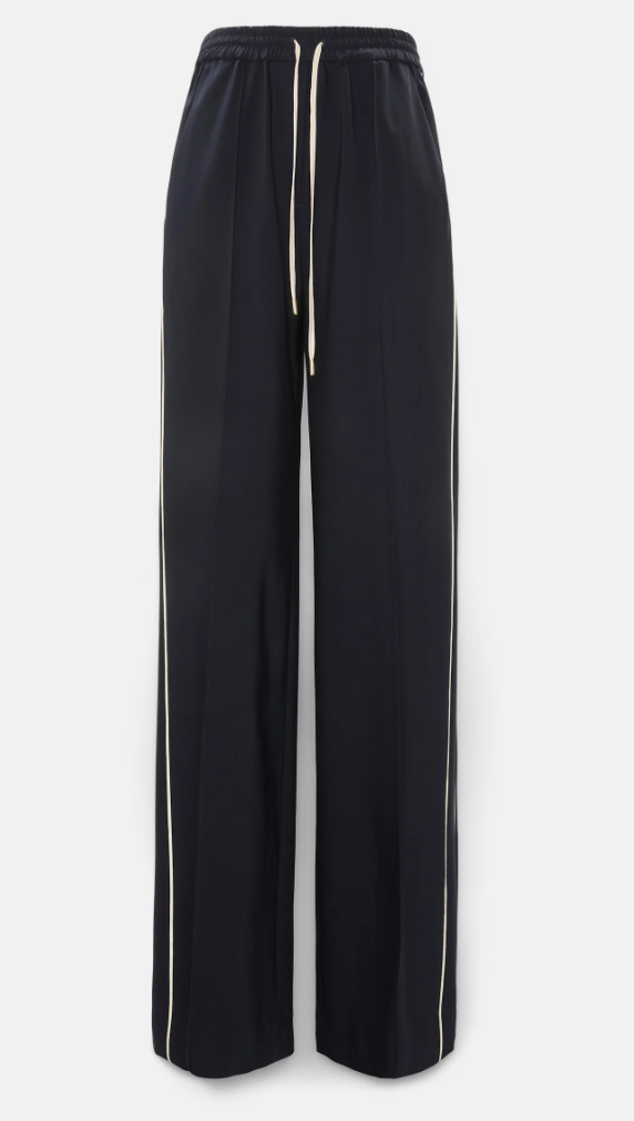 Die Wool Joggers von Dorothee Schumacher verbinden sportliche Lässigkeit mit einer ruhigen, klaren Silhouette. Die lockere Form fällt fließend und wird durch feine Biesen sowie kontrastierende Seitenpaspeln subtil strukturiert. Der elastische Bund mit Kordelzug unterstreicht den entspannten Charakter, während die hochwertige Schurwollmischung für ein angenehm weiches Tragegefühl sorgt. Eine moderne Hose, die Komfort und klare Linien mühelos vereint.