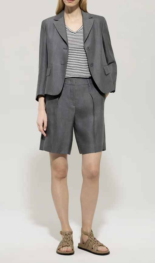 Zwei Knopf-Blazer von LUISA CERANO aus einer leger fallenden Leinen-Lyocell Mischung mit edlem Glanz.