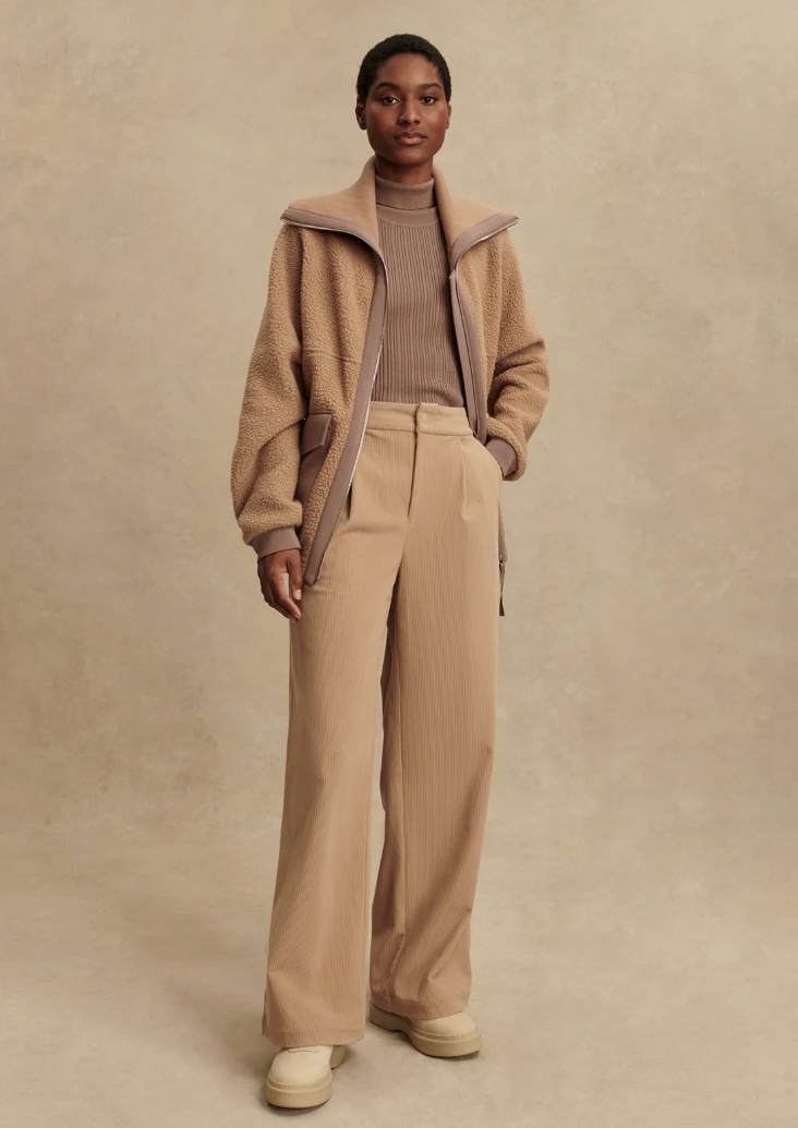 Unvergleichlicher Komfort trifft auf modernen Chic: Die Dubbersoft Hose von VARLEY ist ein echtes Essential für entspannte, aber zugleich stilvolle Looks. Mit ihrer hohen Taille, der weiten Silhouette und der weichen Materialmischung wird sie schnell zum Lieblingsstück im Alltag. Der elastische Bund mit innenliegendem Kordelzug sorgt für perfekten Sitz, während die aufgenähte Bundfalte und die elegante Farbnuance „Coffee Bean Mal“ dem Design eine edle Note verleihen. Hohe Taille Weite Silhouette Elastischer Bund mit innenliegendem Kordelzug Aufgenähte Bundfalte Seitliche Eingriffstaschen Gerades, weites Bein Modelname: The Wide Leg Pants 30 Farbe: Coffee Bean Marl