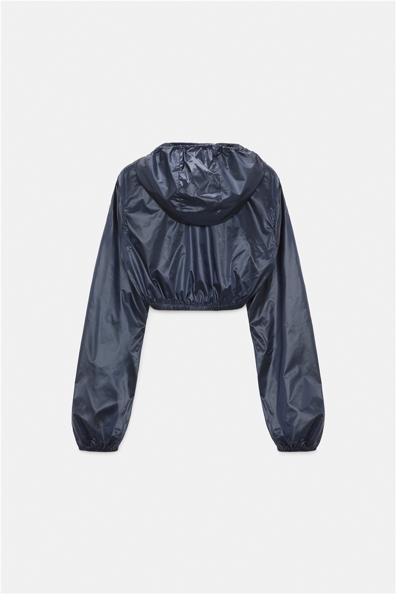 Der Bolero SPORTY COOLNESS von Dorothee Schumacher verbindet technische Raffinesse mit klarer Linienführung. Die kurze, offene Form wird durch die Kapuze mit Kordelzug und markanten Metallbeschlägen akzentuiert. Zarte Rüschen entlang der Vorderseite setzen einen bewussten Kontrast zur sportiven Nylon-Optik. In Dark Navy entfaltet das Modell eine ruhige, urbane Präsenz und ergänzt klassische Blazer oder Jumpsuits mit einer modernen, funktionalen Ebene.