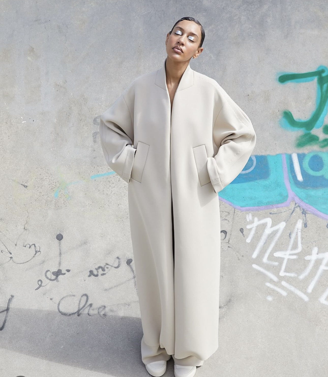 Überlanger College Mantel von ULI SCHNEIDER aus einem sehr angenehmen Neopren Material.