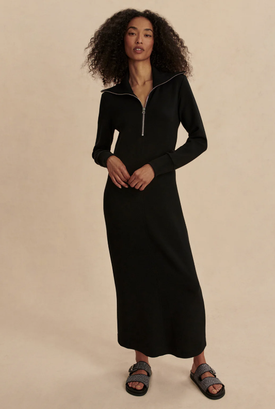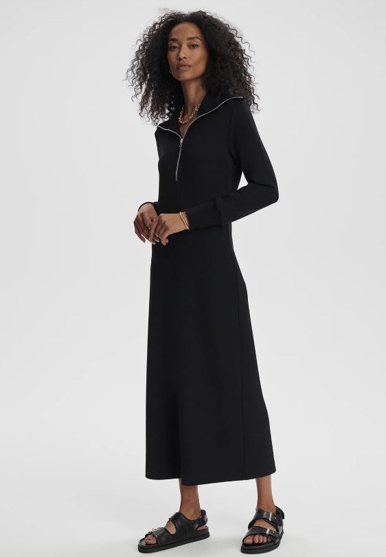 Langes Kleid von VARLEY mit Reißverschluss am Kragen und langen Ärmeln. Ein perfektes Kleid für den Übergang.
