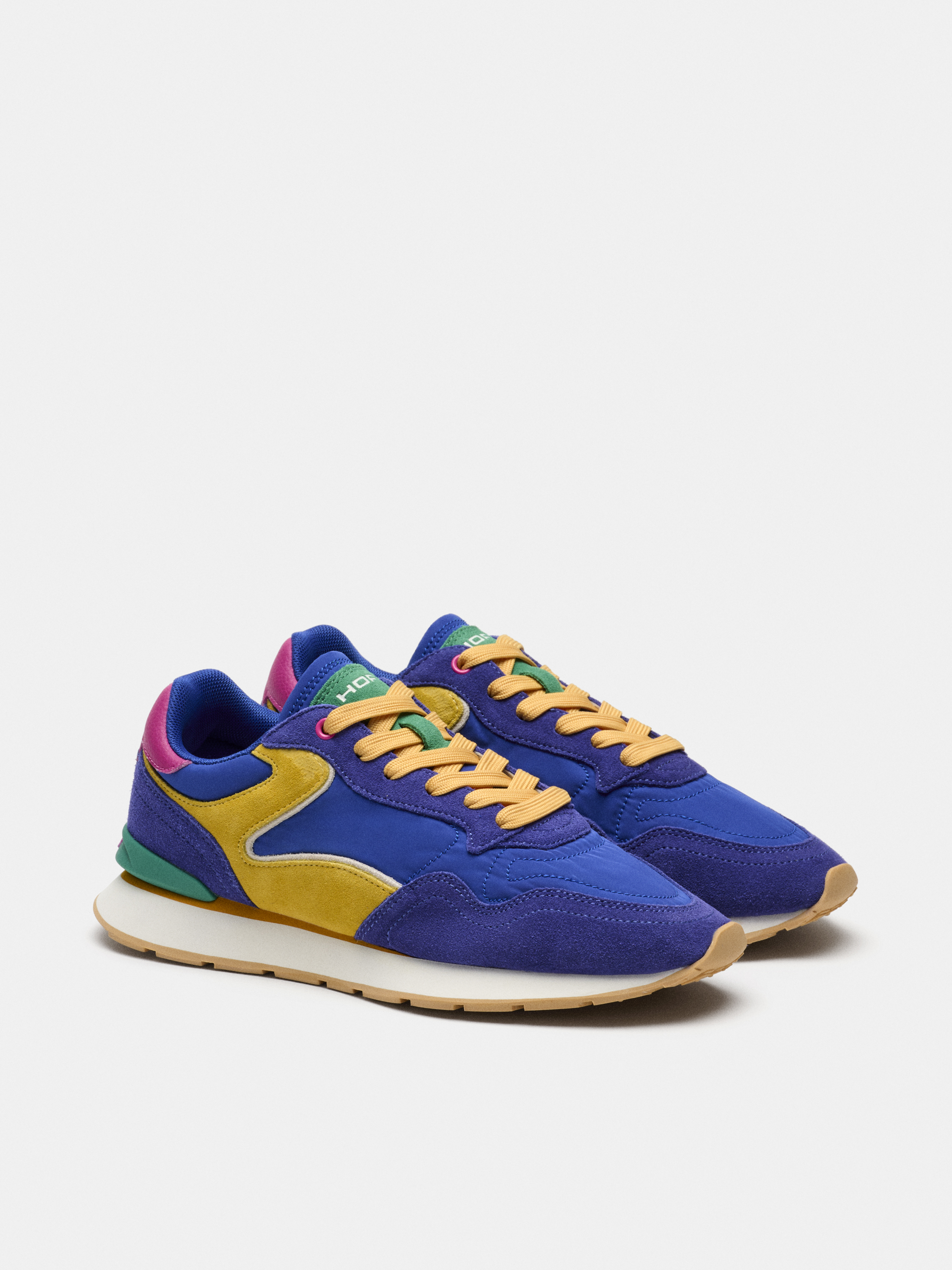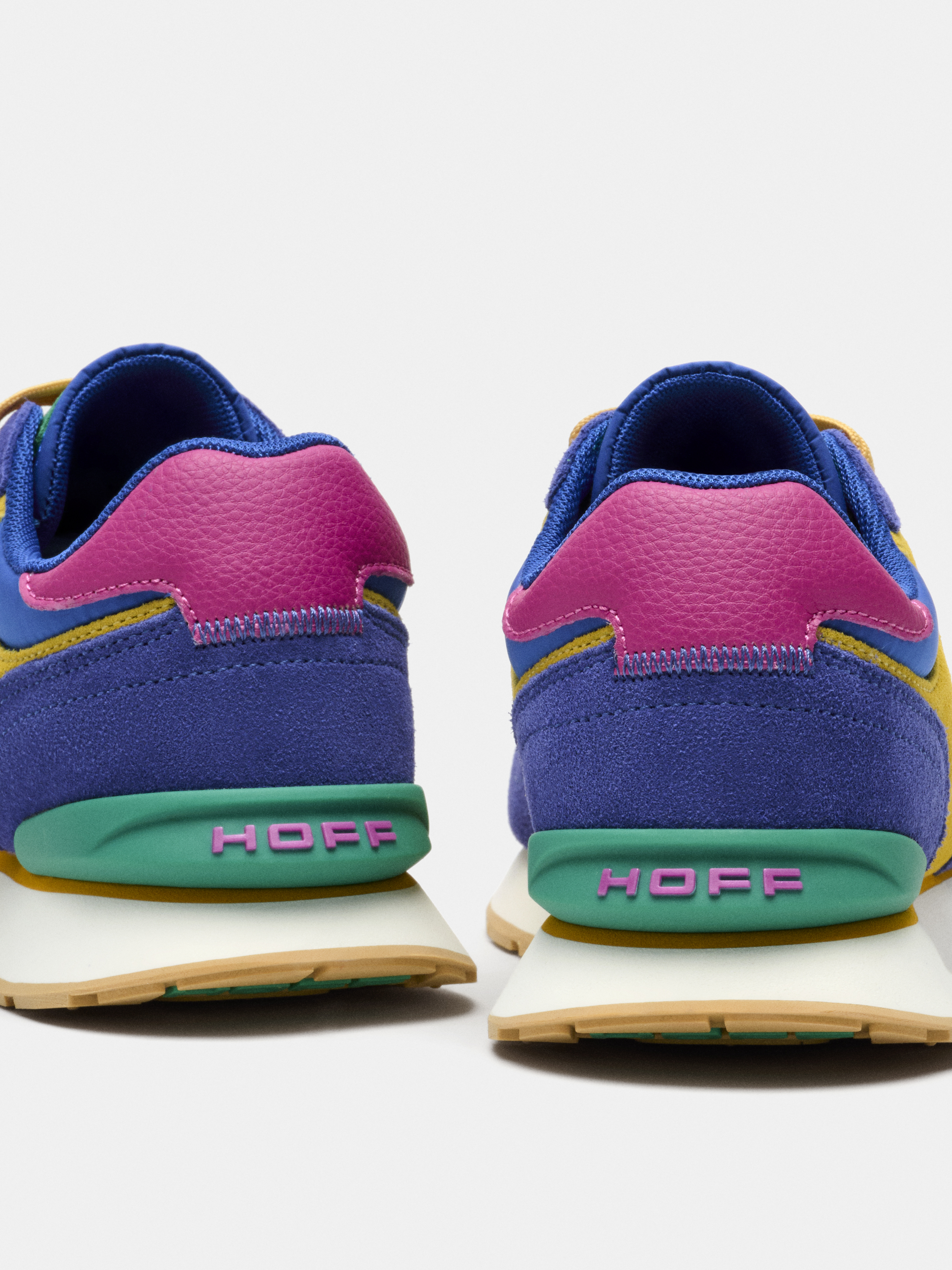 Der Sneaker „City Dopamine“ von HOFF verbindet eine dynamische Silhouette mit einer lebendigen Farbkomposition. Nylon mit dezentem Satin-Finish trifft auf weiches Veloursleder und erzeugt eine strukturierte Oberfläche mit sportiver Leichtigkeit. Die Form bleibt bewusst weich und flexibel – ohne starre Verstärkungen oder feste Zehenkappe – und passt sich dem Fuß natürlich an. Dadurch entsteht ein besonders leichtes Tragegefühl, das durch die komfortable Memory-Foam-Innensohle zusätzlich unterstützt wird. Die farbstarken Kontraste verleihen dem Modell eine ausdrucksstarke, urbane Präsenz.