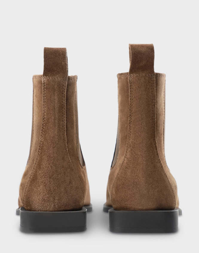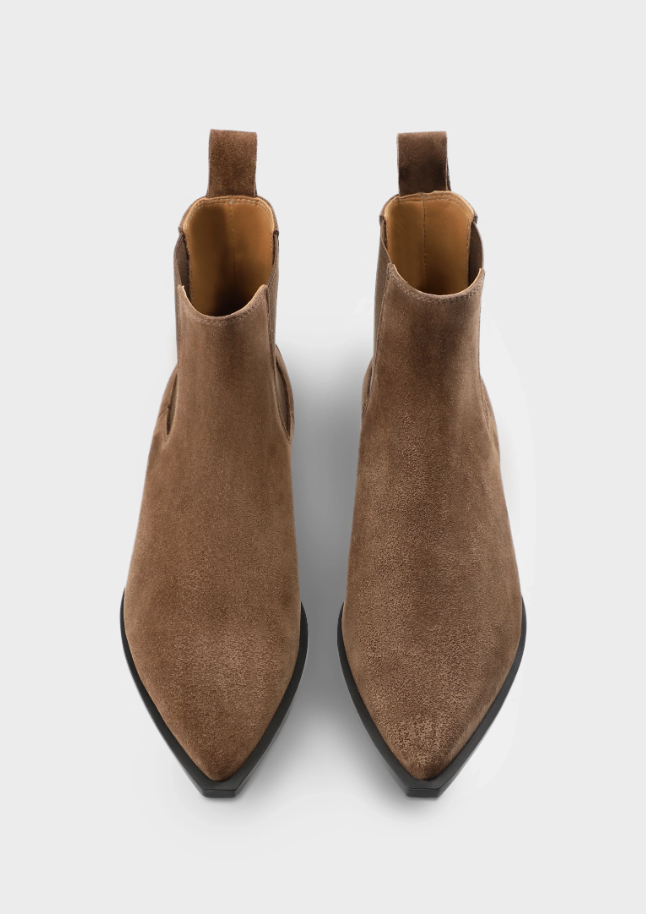 Eine moderne Interpretation des klassischen Chelseaboots von Copenhagen Studios: Die spitze Stiefelette in der Farbe New Mokka überzeugt durch ihre feine Linienführung und die sorgfältig gearbeitete Spitze. Elastische Einsätze und eine dezente Zugschlaufe sorgen für hohen Tragekomfort im Alltag, während die dunkle, markante Sohle dem Modell einen zeitlosen, urbanen Look verleiht. Das dezente Logo auf der Außenseite unterstreicht den minimalistischen Stil des Designs.