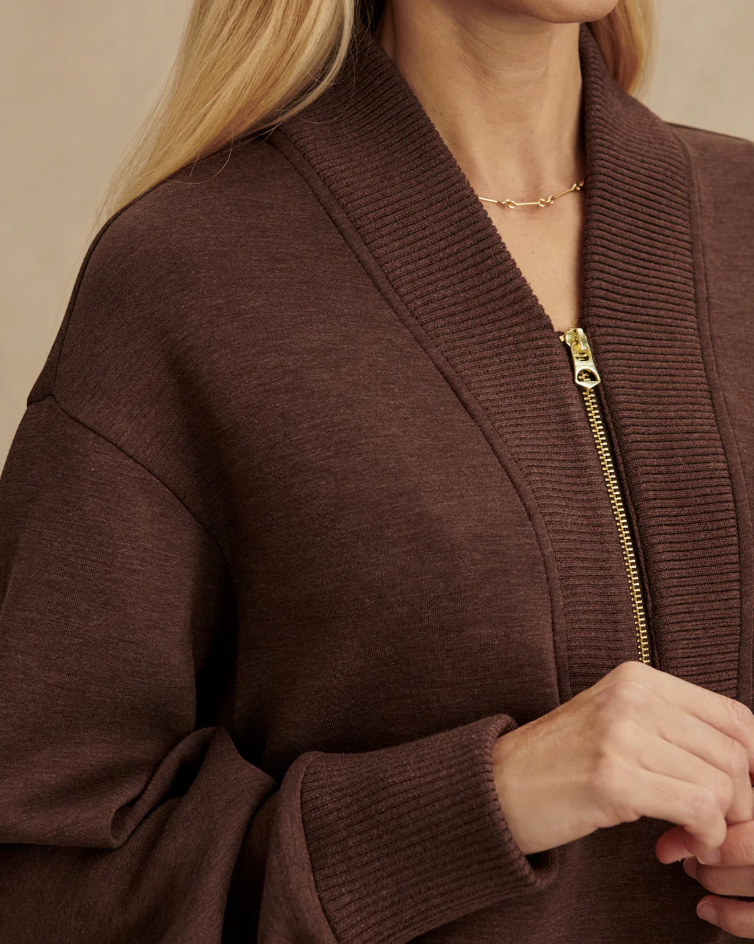Der Sally Sweater mit halbem Reißverschluss von VARLEY ist der perfekte Alltagsbegleiter. Gefertigt aus einem weichen Double Soft Material bietet er höchsten Tragekomfort und überzeugt mit stilvollen Details. Die groben Rib-Strick-Elemente am V-Ausschnitt, am Saum und an den Ärmelbündchen sorgen für eine moderne Optik. Mit seiner lässig überschnittenen Schulterpartie und dem soften Griff wird er schnell zum Lieblingsstück.