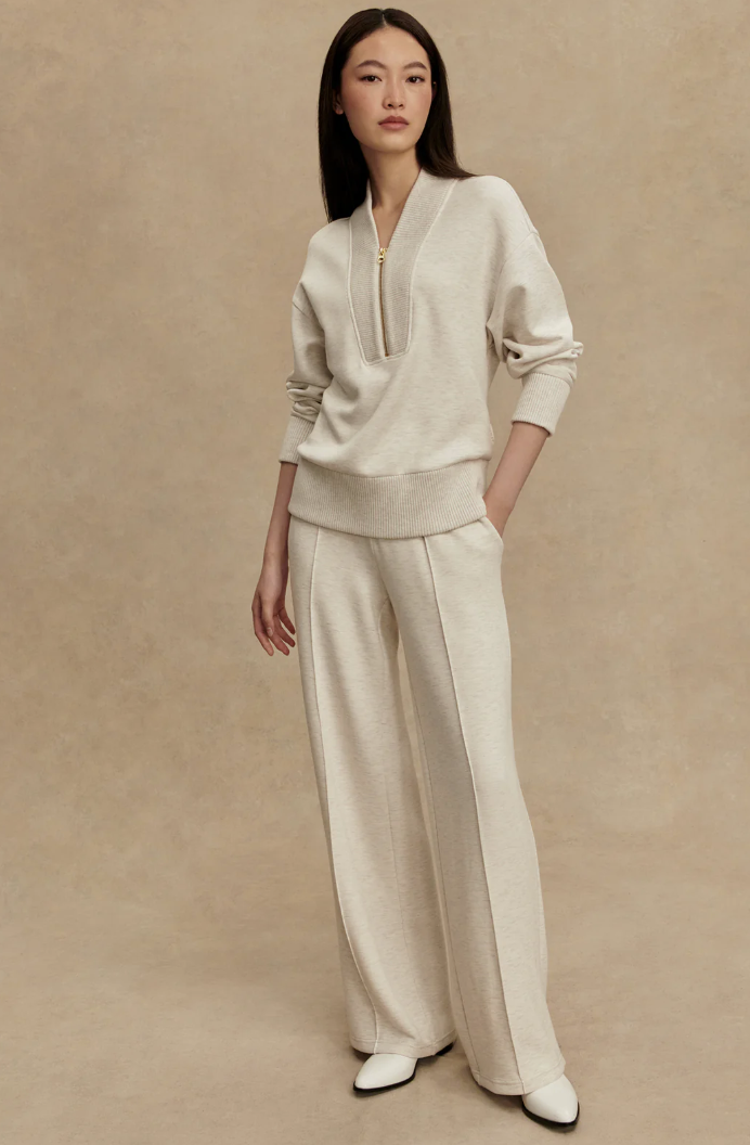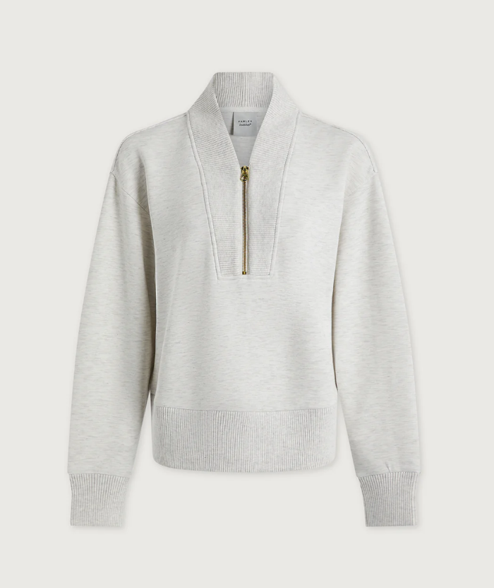 Der Sally Sweater mit halbem Reißverschluss von VARLEY ist der perfekte Alltagsbegleiter. Gefertigt aus einem weichen Double Soft Material bietet er höchsten Tragekomfort und überzeugt mit stilvollen Details. Die groben Rib-Strick-Elemente am V-Ausschnitt, am Saum und an den Ärmelbündchen sorgen für eine moderne Optik. Mit seiner lässig überschnittenen Schulterpartie und dem soften Griff wird er schnell zum Lieblingsstück.
