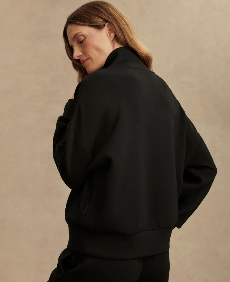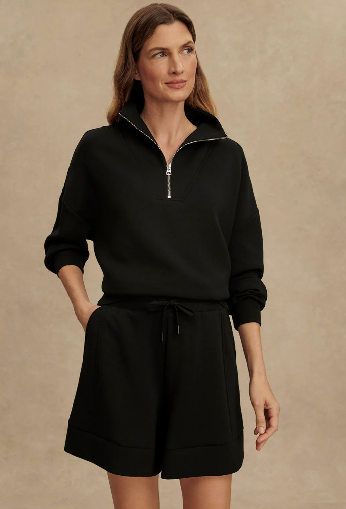 Das Hawley Half-Zip Sweat von Varley lässt sich ideal mit der Wide Leg Pant oder der Cuff Pant in Schwarz kombinieren. Während die Wide Leg Pant eine fließende, elegante Silhouette unterstreicht, sorgt die Cuff Pant für einen sportiveren, kompakteren Look. In beiden Varianten entsteht ein stimmiger, monochromer Gesamtlook, ergänzt durch cleane Sneaker oder minimalistische Slides.