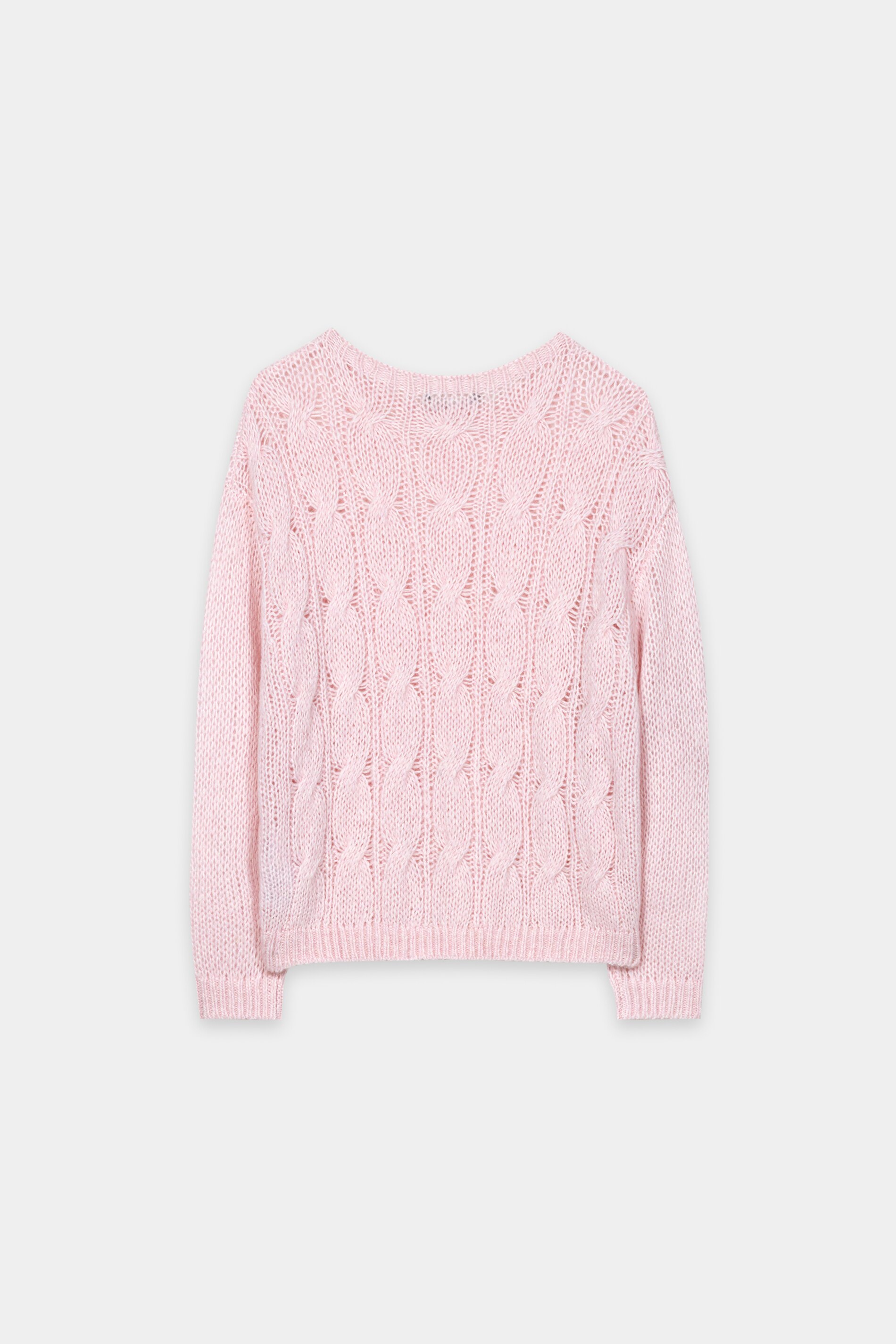 Ideal für den Frühling wirkt der Pullover wunderschön zu einer weißen oder fließenden hellen Hose, die seine Leichtigkeit perfekt aufnimmt. Durch den kastigen Schnitt harmoniert er ebenso gut mit weiteren Hosenformen. Für einen modernen, entspannten Alltagslook eignet sich eine helle, leicht verkürzte Jeans, kombiniert mit einem kleinen Schlappen, weißen oder rosafarbenen Sneakern oder zarten Ballerinas. So entsteht ein femininer, luftiger Look, der die besondere Struktur und die Federn elegant hervorhebt.