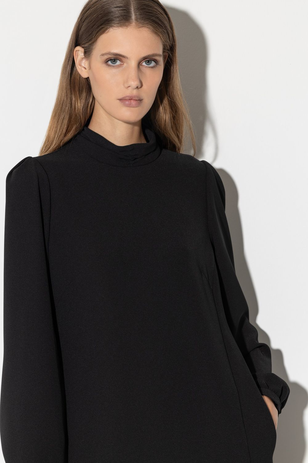 - Modelname: Minikleid mit Stehkragen