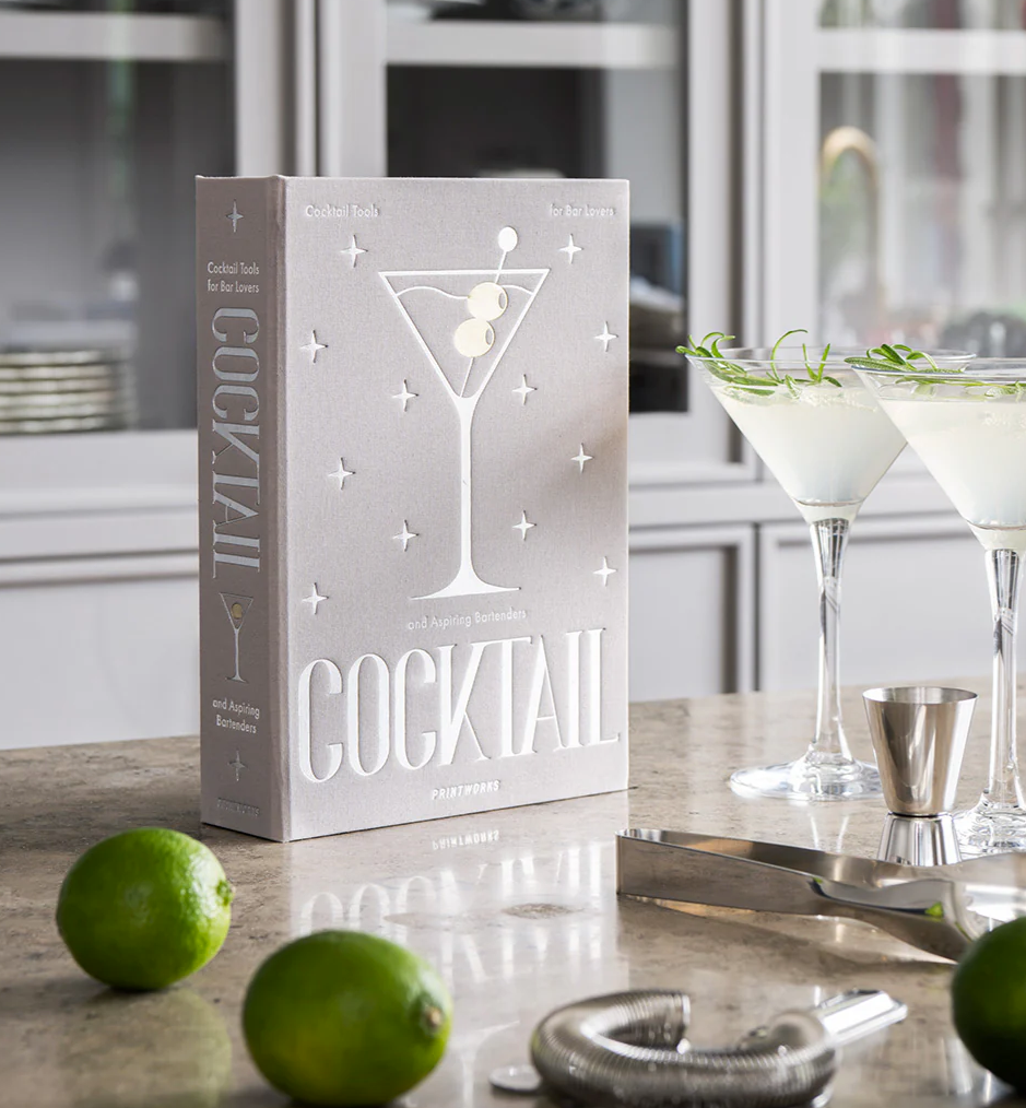Wir präsentieren das unverzichtbare Set zum Mixen der erfrischendeb Coctails von PRINTWORKS, ein raffinierter Werkzeugkasten in einer elegante buchänliche Box. Ale Werkzeuge sind aus rostfreiem Stahl und spülmaschinenfest. In dieesem Set erhalten: Eiszange Hawthorne Sieb Messbecher Leitfaden zu klassischen Coctails und ihre Zubereitung Höhe: 25,4cm Breite: 17,7cm Tiefe: 4cm Gewicht: 0,69kg Farbe: grau/metallic Material: 30% Baumwollstoff, 20% Graupappe, 10% EVA-Schaum, 40% Stahlmetall für Komponenten