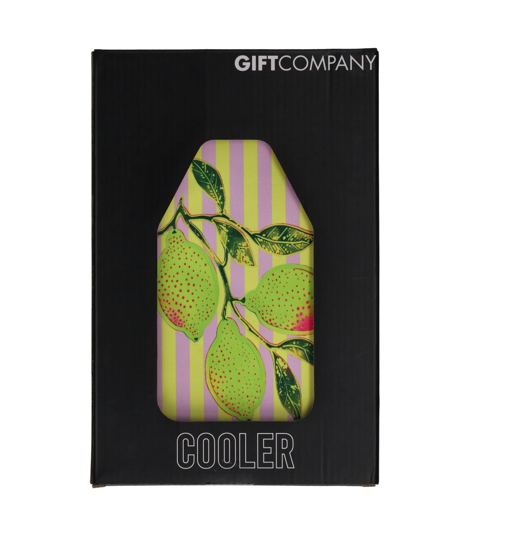 Eine farbenfrohe Kühlmanschette mit lebendigem Zitronenmotiv, die Sommerlaune auf den Tisch bringt und Flaschen stilvoll gekühlt hält. Die Kombination aus Pink und Gelb wirkt frisch und verspielt, während die flexible Gel-Füllung für zuverlässige Kühlung sorgt. Ein dekoratives und zugleich praktisches Accessoire von Gift Company, das jeden Aperitif-Moment mit einem fruchtigen Akzent begleitet.