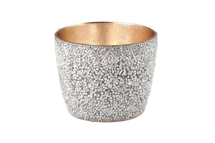 Madras Windlicht M mit Perlen weiß