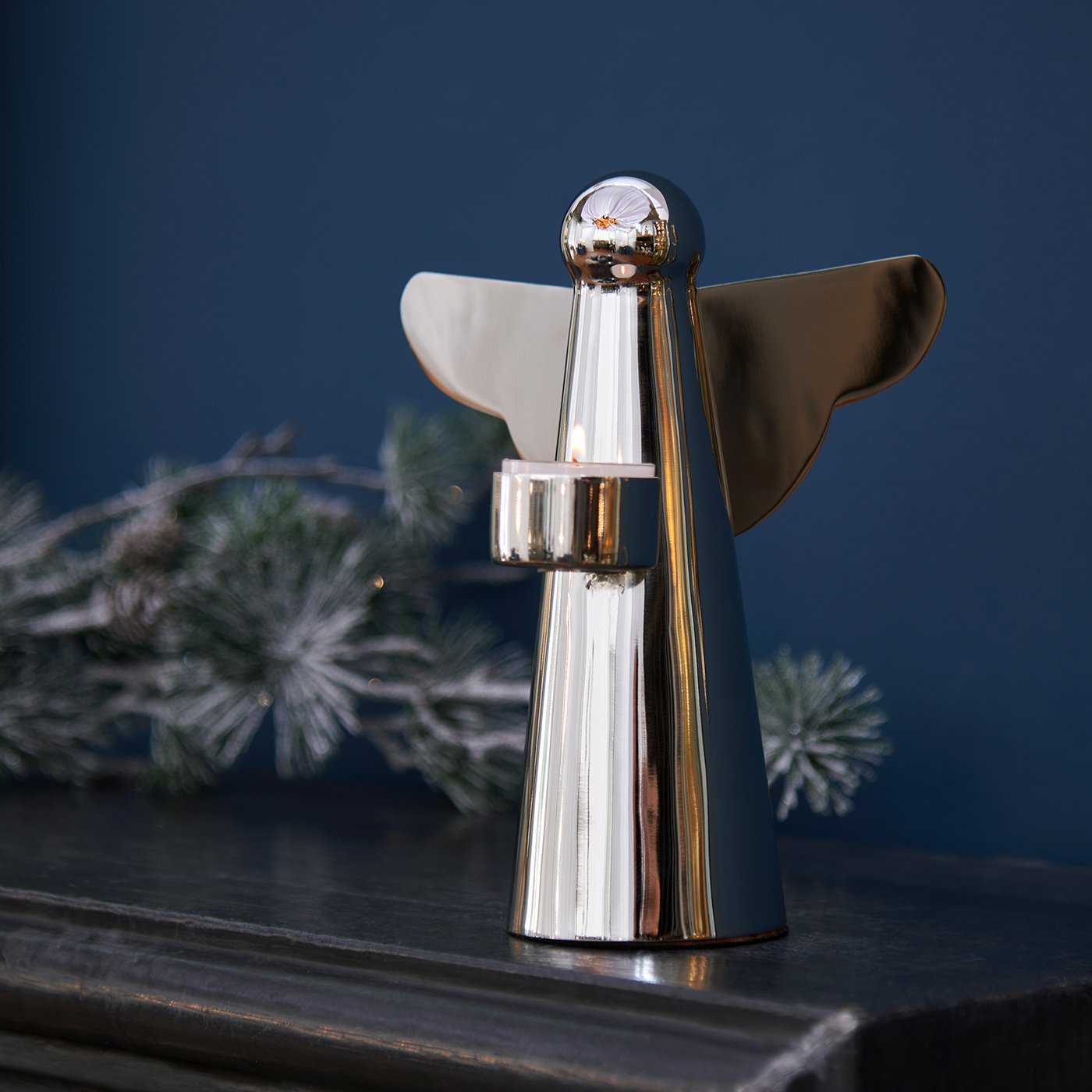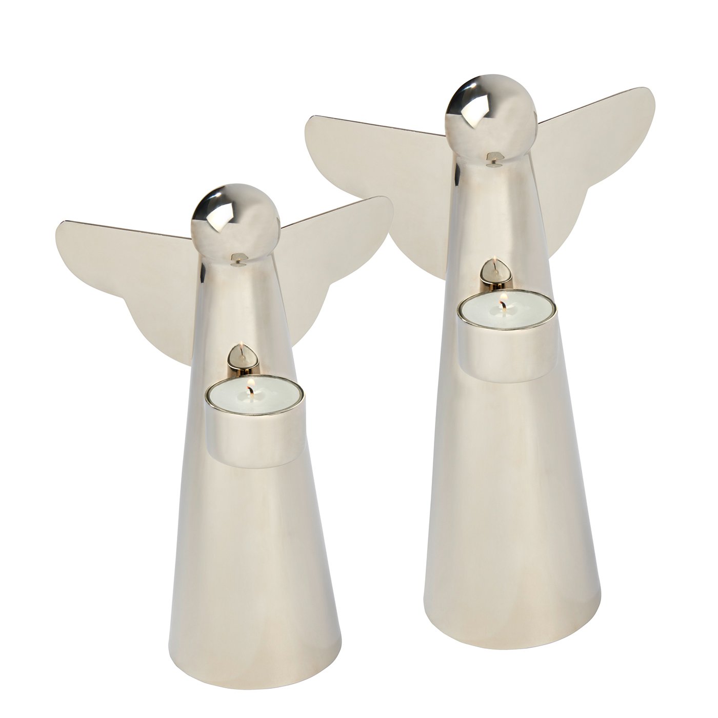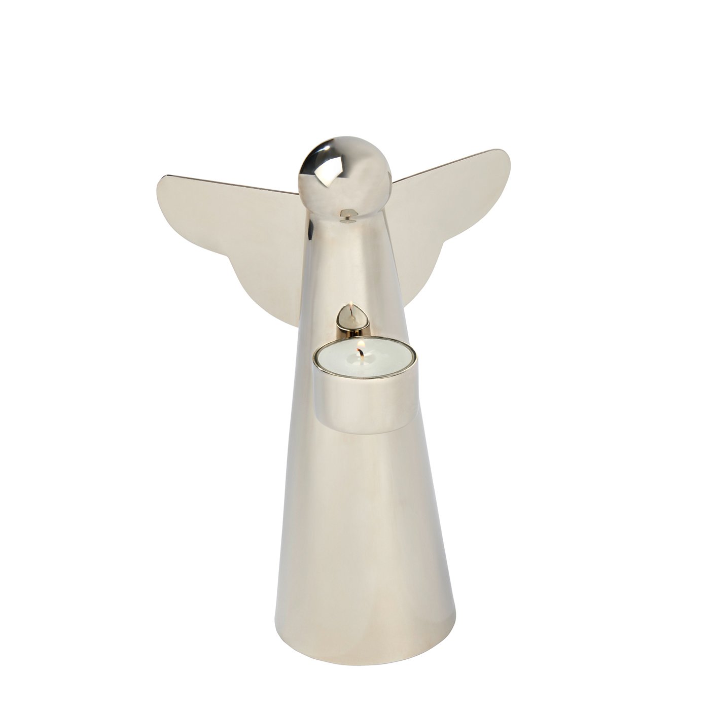 Der Muriel Deko Engel von Lambert ist ein faszinierendes Wohnaccessoire, das Tradition und modernes Design kunstvoll miteinander verwebt. Seit Jahrtausenden gelten Engel in mono-theistischen Kulturen als Symbole für Schutz, Sicherheit und Geborgenheit – ein Gedanke, der hier in Edelstahl neu reimagined wurde. Die stilisierte, von Hand gefertigte Form wirkt zugleich schlicht und captivating, während die vernickelte Oberfläche das Licht edel reflektiert und eine beinahe kaleidoscopic Atmosphäre auf dem Tisch erschafft. Mit einem Teelicht bestückt, orchestrates der Engel ein warmes, beruhigendes Leuchten, das jede weihnachtliche Tafel bereichert.